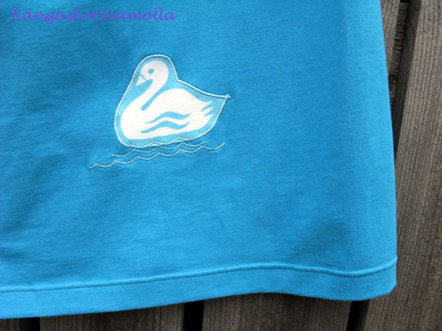 Vielä yksi toppi kaupanpäälle. Helmassa on yksityiskohtana joutsen ja koristeommelaaltoja.